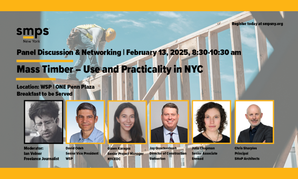 “Mass Timber – Use and Practicality in NYC” will delve into the intersection of sustainable design and construction with the rise of mass timber in projects across New York City. Discover the practicality and versatility of mass timber in urban environments, and explore the types of projects leveraging this innovative material to achieve sustainability goals.