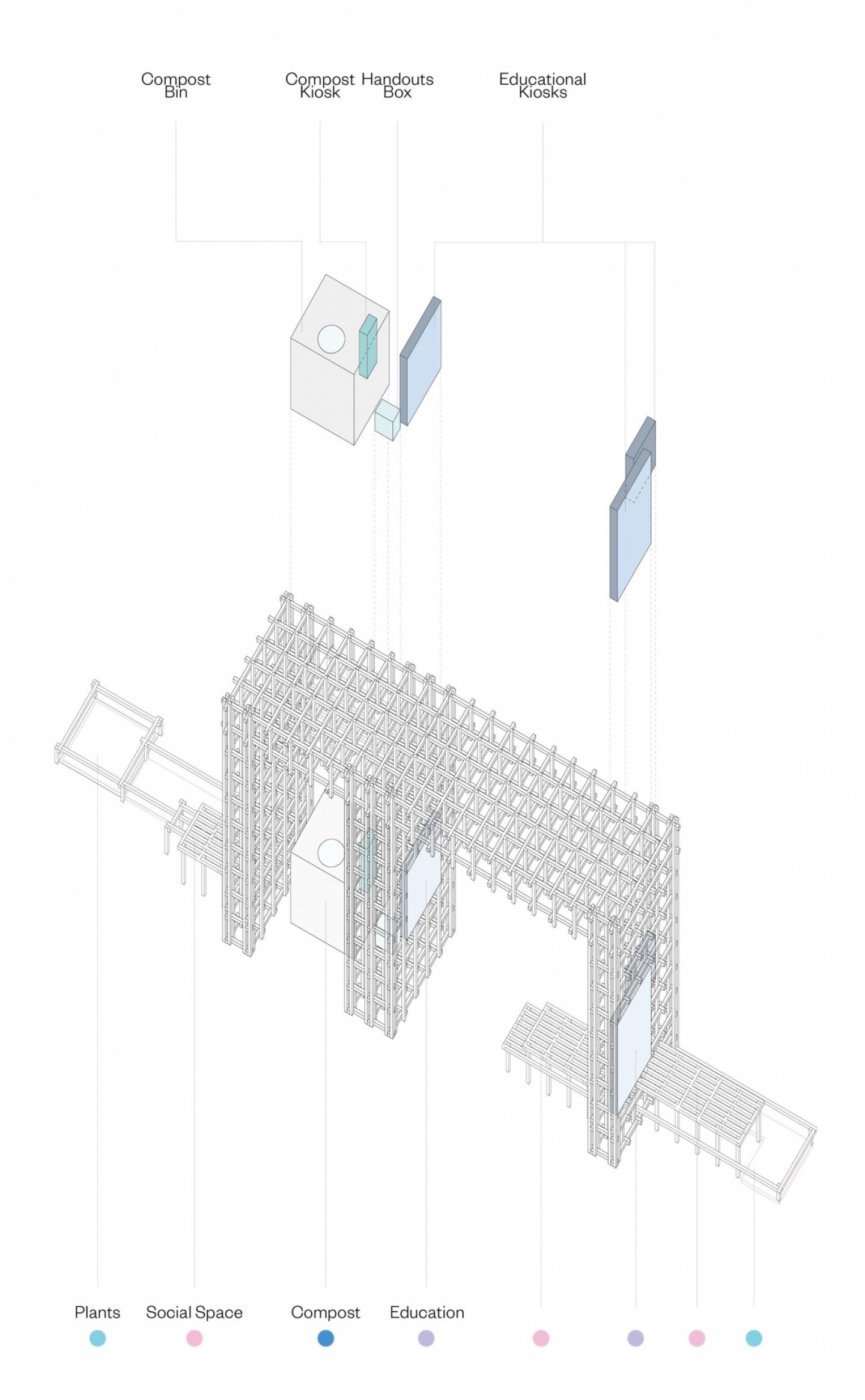 The Green Shed serves as a composting station, educational kiosk, social space, and community engagement tool. Local residents and passersby who wish to compost can come to the Green Shed for an easy and fun composting experience.