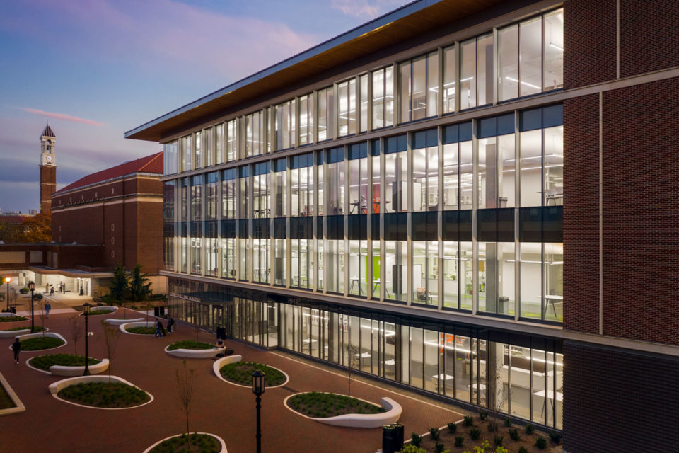 The first of its kind at Purdue, this interdisciplinary STEM teaching facility puts science on display and advances a team-based approach to learning. Sited in the heart of campus, the Chaney-Hale Hall of Science houses 33 teaching labs for biology, chemistry, biochemistry, organic chemistry, and chemical engineering. The building offers lab-of-the-future learning space for science and engineering courses, providing a flexible, highly visible, and technology-rich environment that encourages new modes of peer-to-peer engagement.