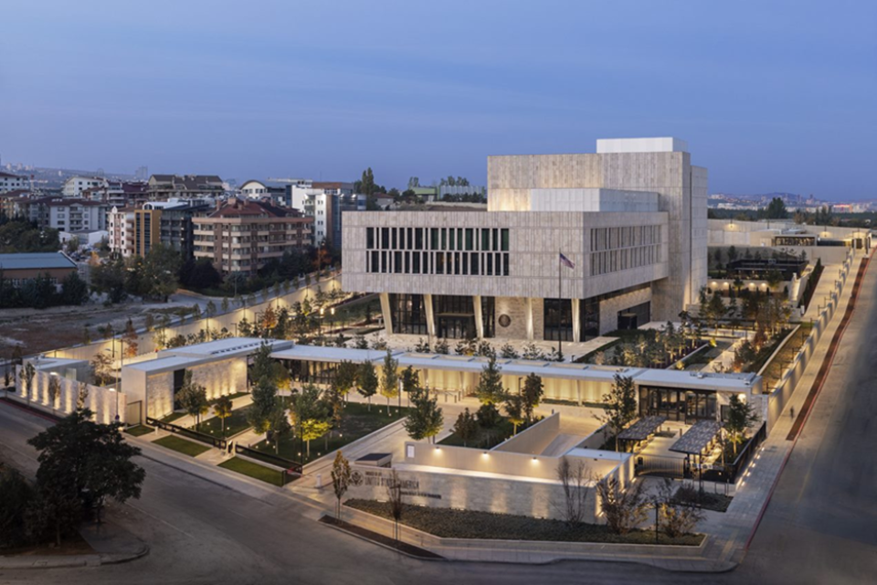 The U.S. Department of State’s Bureau of Overseas Buildings Operations (OBO) has opened the U.S. Embassy in Ankara, Türkiye, designed by Ennead Architects. The new Embassy design draws from Türkiye’s rich architectural tradition to deliver high-performing, sustainable, resilient facilities that ensure a robust platform for U.S. diplomacy abroad.