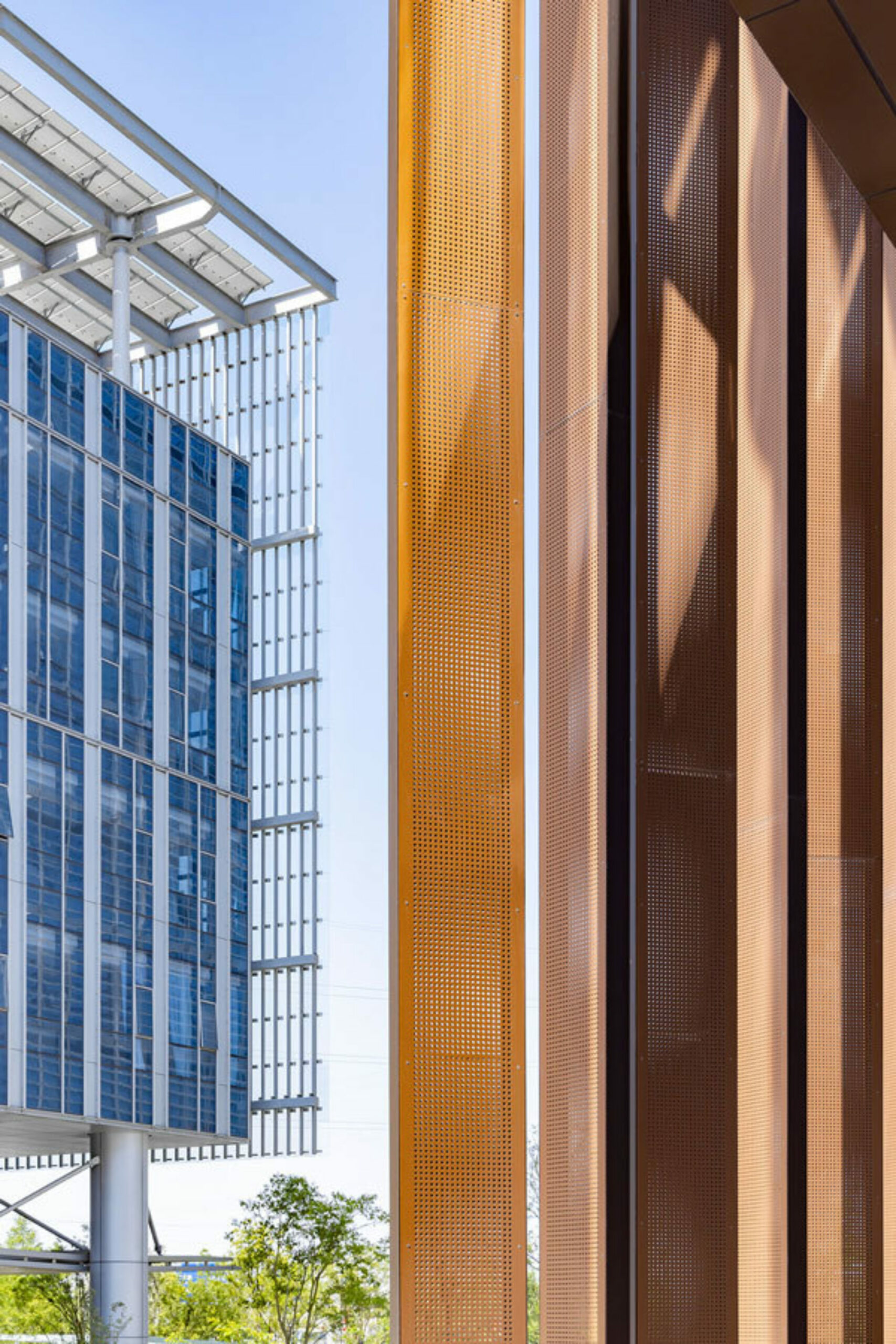 The project has strong sustainable goals that were achieved by PV arrays on each building that turn down to act as sun shading devices on selected façades with high solar exposure.